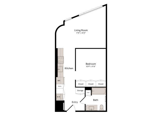 Apartment Model: U1.8Call For RatesStudio, 1 Bath, 709 sq ftUnavailableFloor plans are artist's rendering. All dimensions are approximate. Actual product and specifications may vary in dimension or detail. Not all features are available in every rental home. Prices and availability are subject to change. Base rent is based on monthly frequency. Additional fees may apply, such as but not limited to package delivery, trash, water, amenities, etc. Deposits vary. Please see a representative for details.