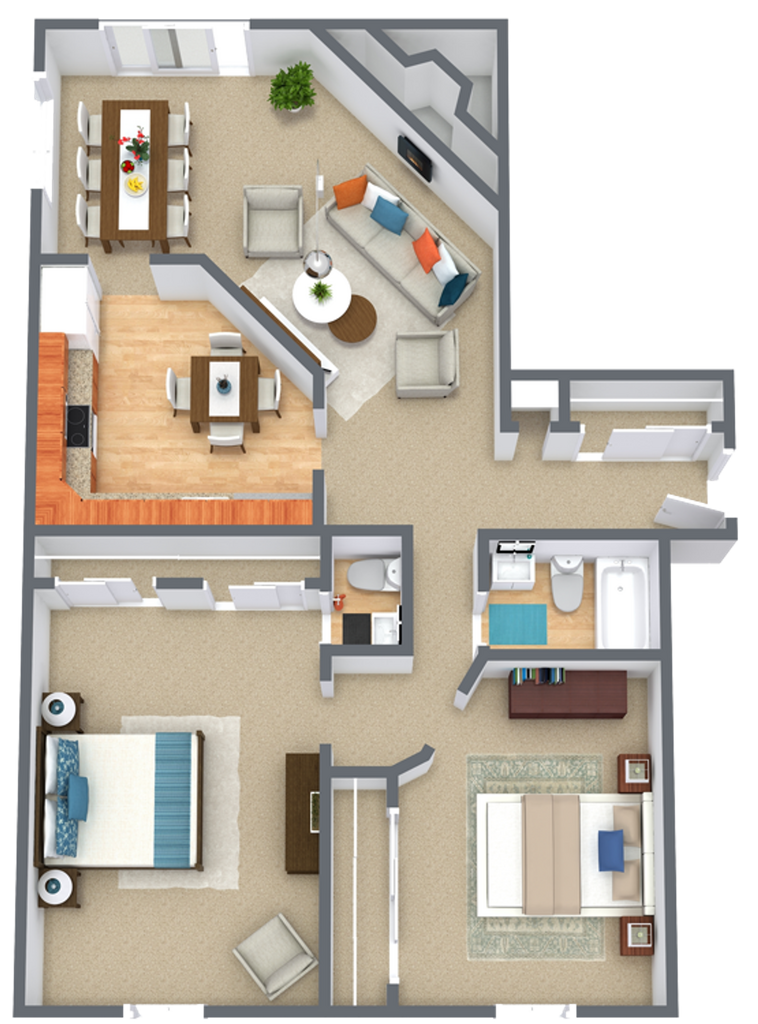 2 Beds, 1.5 Baths, 850 sq ftAvailable NowModel Gallery