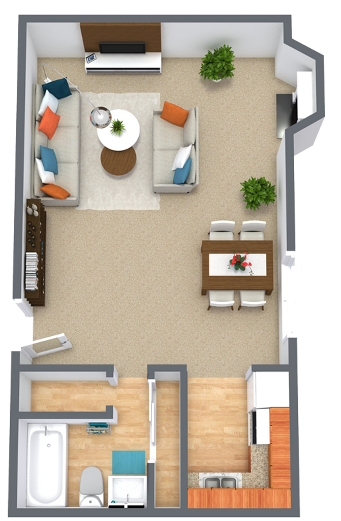 Studio, 1 Bath, 500 sq ftAvailable NowModel Gallery