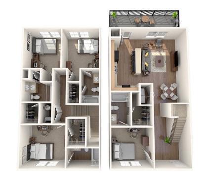 Apartment Model: 4BR/4BA - TH4 Bedroom, 4 Bath, 1841 sq ftUnavailable![]() - 4BR/4BA - TH - Floorplan 1 ![]() - 4BR/4BA - TH - Floorplan 2 - 4BR/4BA - Flat4 Beds, 4 Baths, 2064 sq ft- Model Gallery- Floorplans- Availability Details- Availability Date - Unit - Sq Ft - Unavailable - 4BR/4BA - Flat - 2064 sq ft - Model Amenities and Features- Features- Balcony