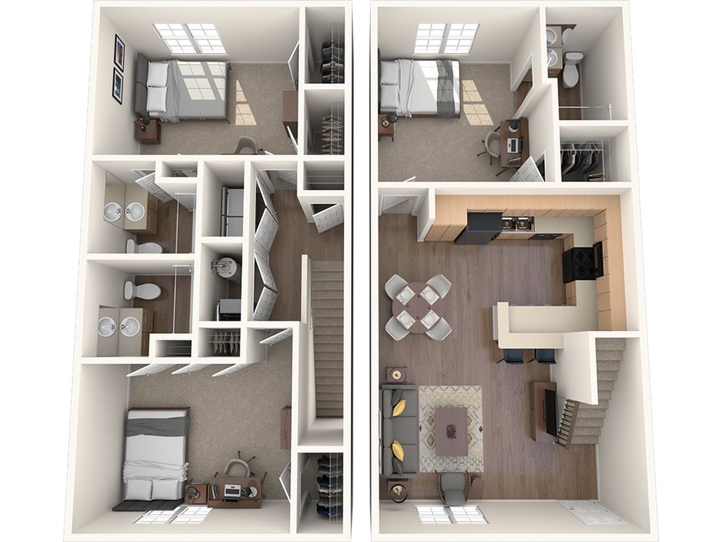 4BR/4BA - TH - Floorplan 2 Apartment Unit: 4x4 THApartment Model: 4BR/4BA - TH4 Bedroom, 4 Bath, 1841 sq ftAvailable Soon4BR/4BA - TH Signature