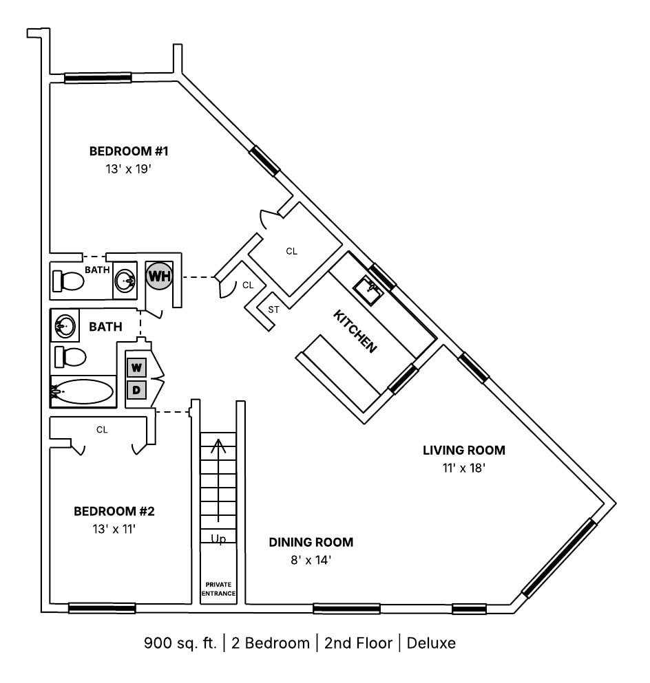 Apartment Model: 2BR Deluxe 2nd Floor$1,6002 Bedroom, 1.5 Bath, 900 sq ftAvailable Now![]()