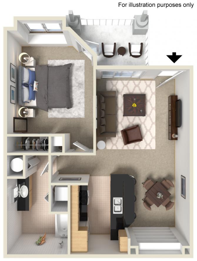 1 Bed, 1 Bath, 701 sq ftAvailable NowModel Gallery