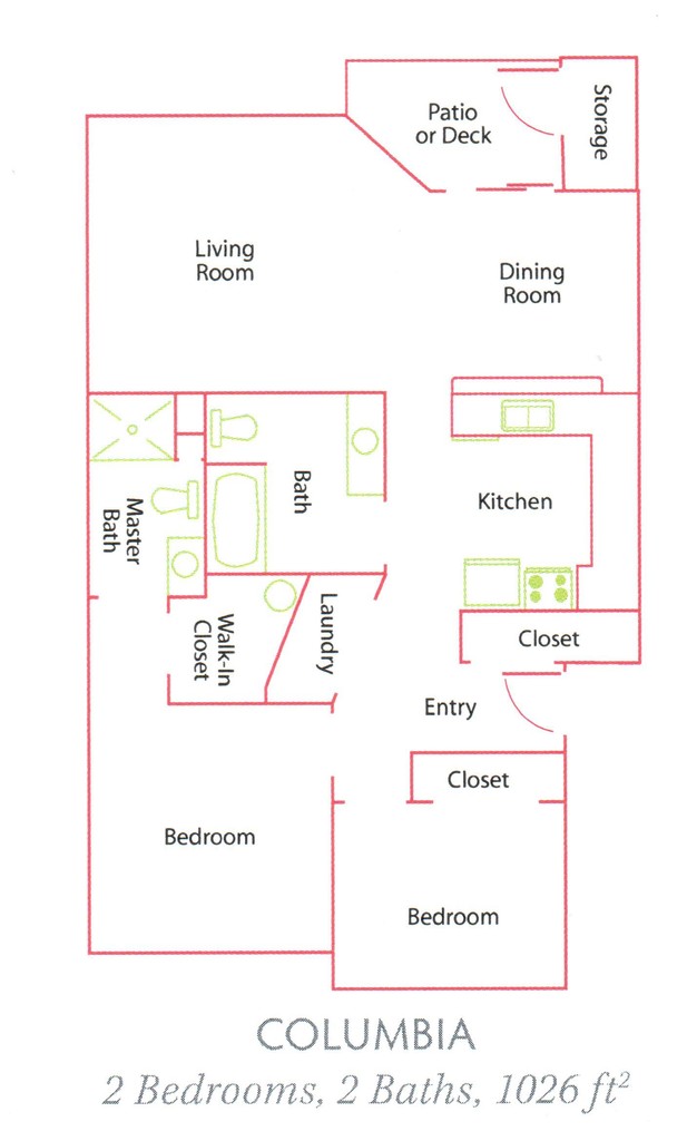 Apartment Model: ColumbiaCall For Rates2 Bedroom, 2 Bath, 1026 sq ftUnavailableColumbia - Floorplan 1 3 Bedrooms
