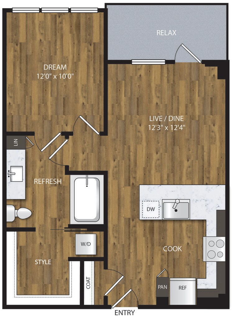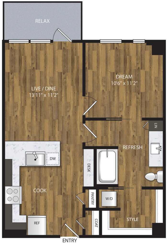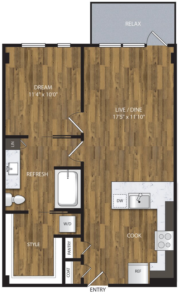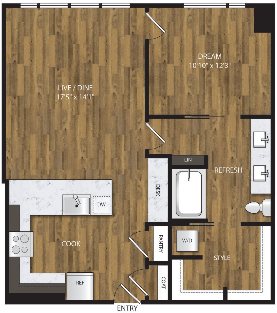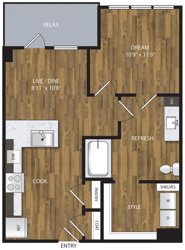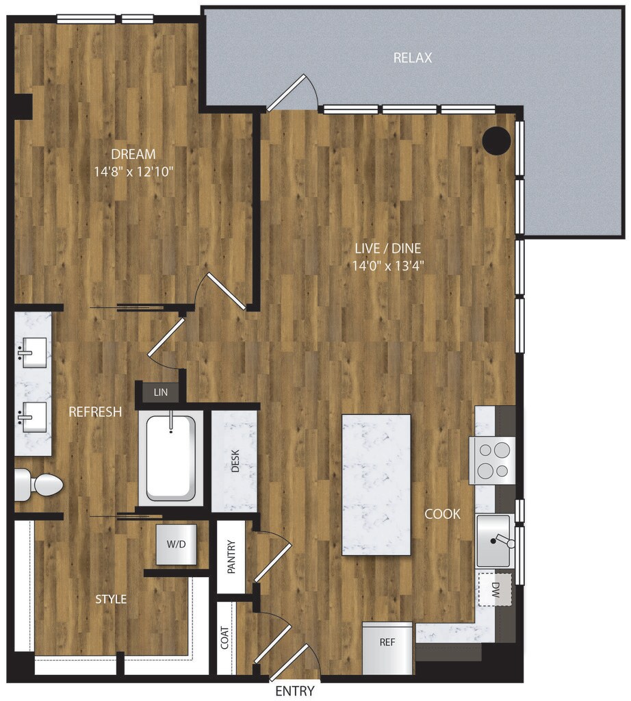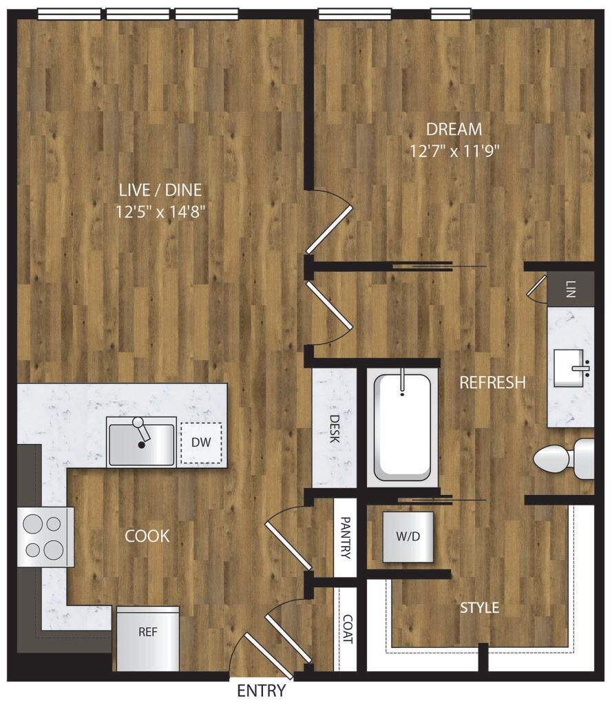 1 Bed, 1 Bath, 653 sq ftAvailable NowModel Gallery