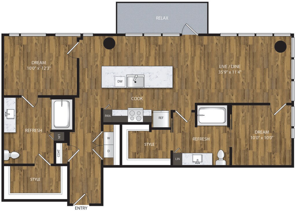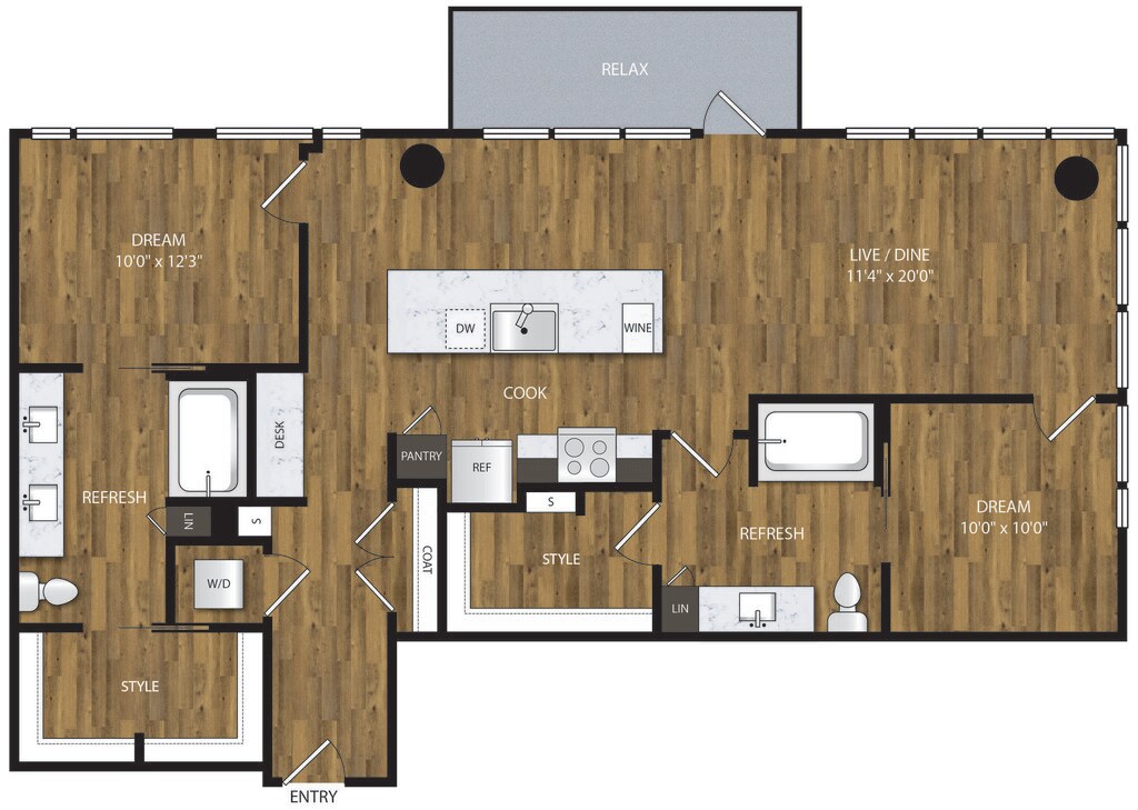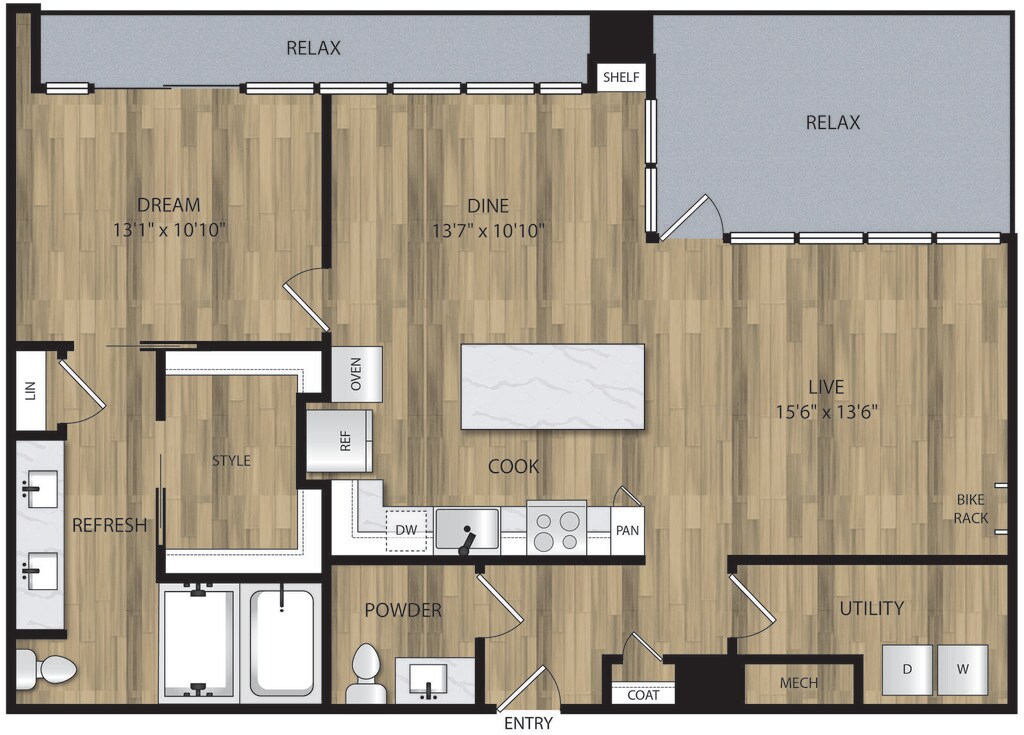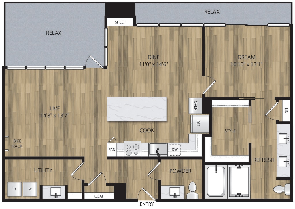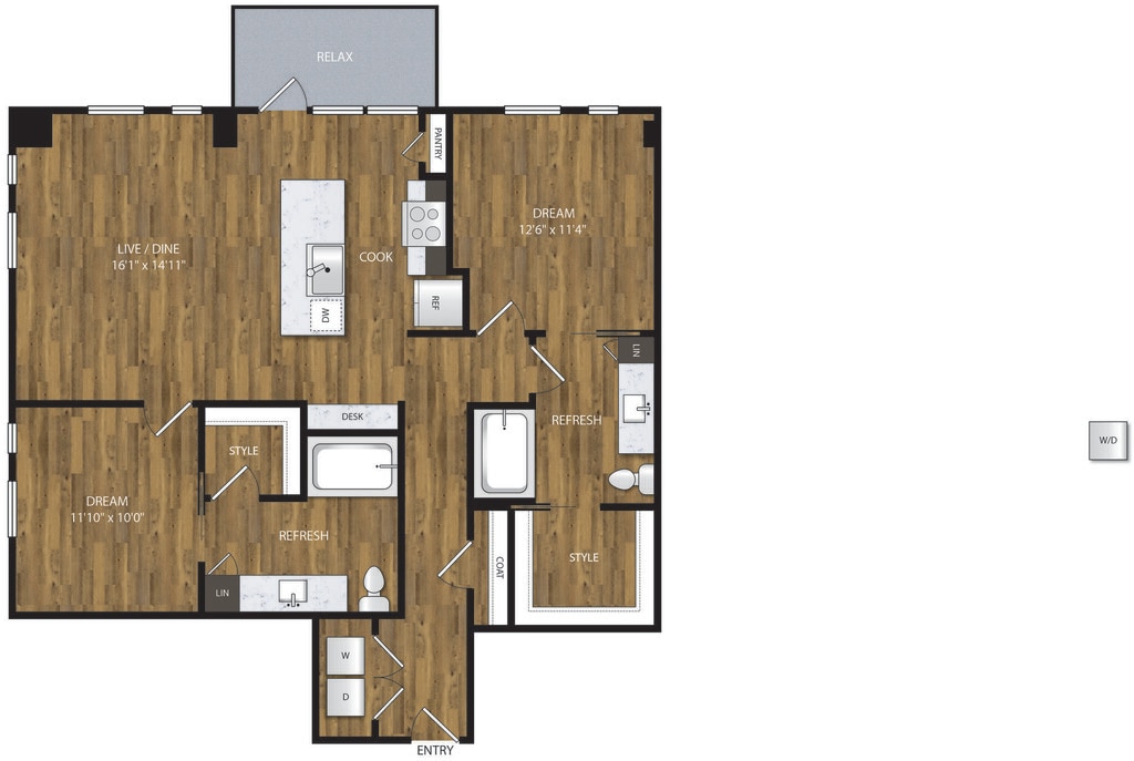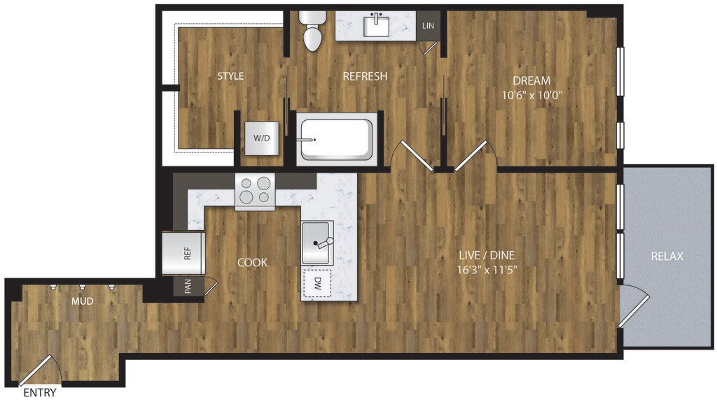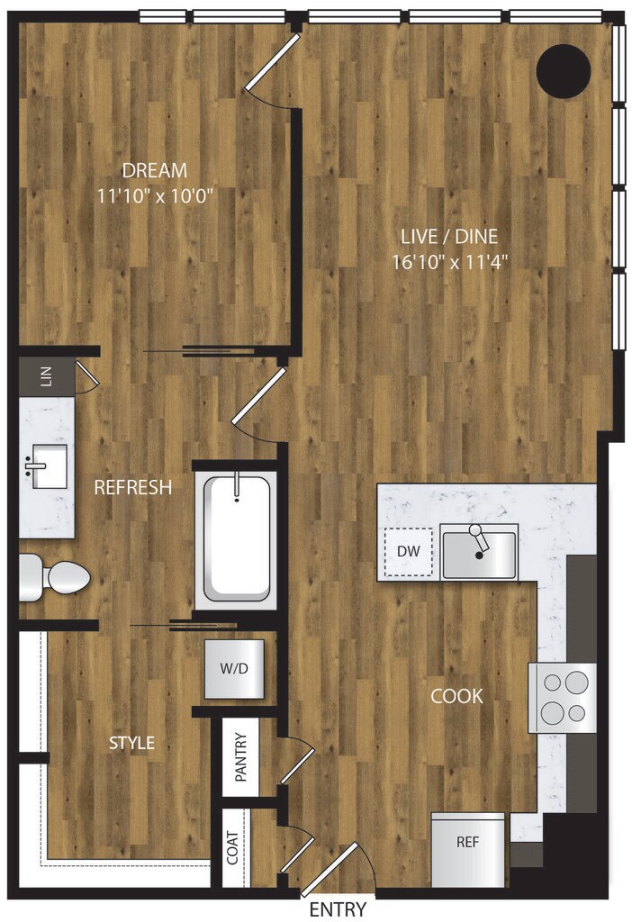 1 Bed, 1 Bath, 653 sq ftAvailable NowModel Gallery