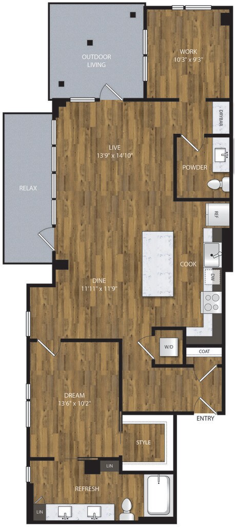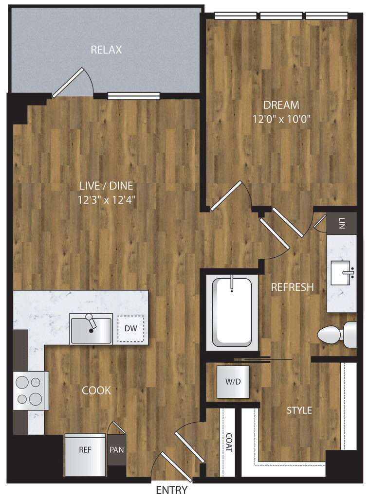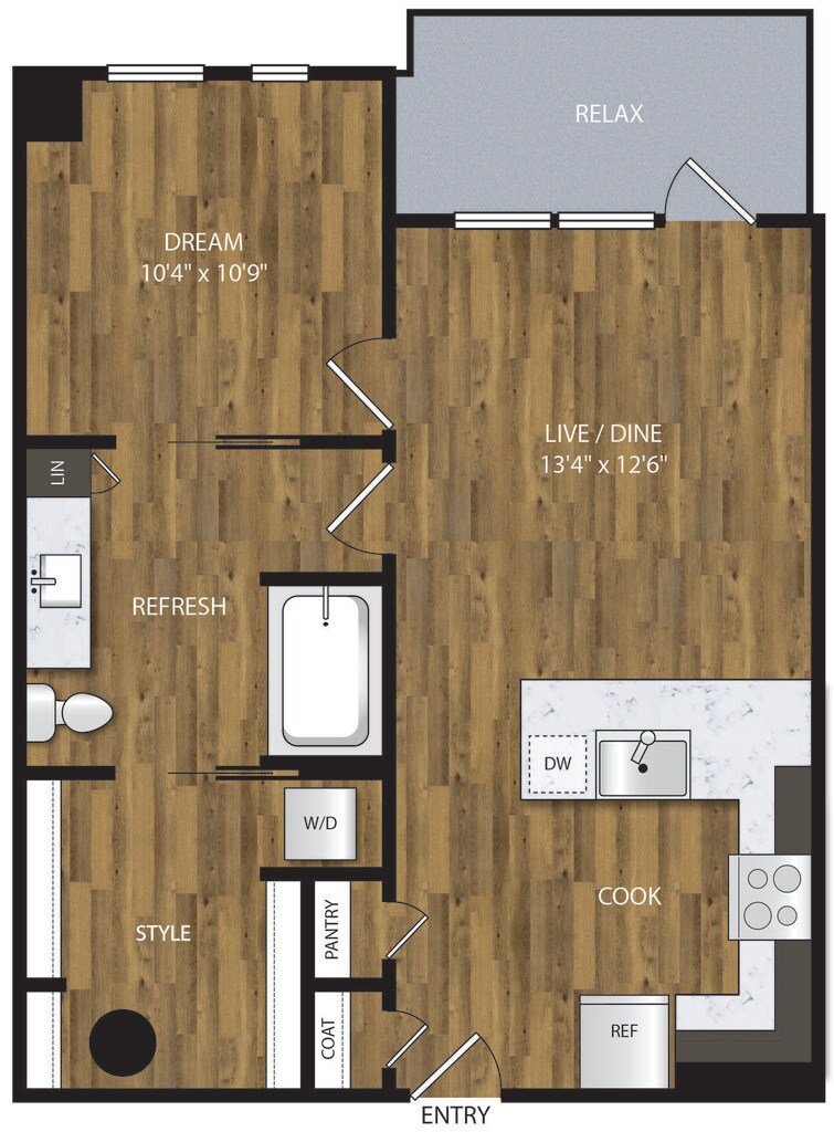 Apartment Model: A-1.3From $1,9491 Bedroom, 1 Bath, 653 sq ftAvailable NowFloor plans are artist's rendering. All dimensions are approximate. Actual product and specifications may vary in dimension or detail. Not all features are available in every rental home. Prices and availability are subject to change. Base rent is based on monthly frequency. Additional fees may apply, such as but not limited to package delivery, trash, water, amenities, etc. Deposits vary. Please see a representative for details.