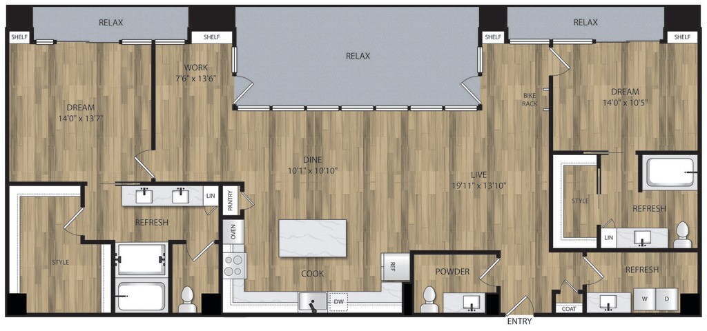 Apartment Model: A-1.4$1,9401 Bedroom, 1 Bath, 723 sq ftAvailable NowFloor plans are artist's rendering. All dimensions are approximate. Actual product and specifications may vary in dimension or detail. Not all features are available in every rental home. Prices and availability are subject to change. Base rent is based on monthly frequency. Additional fees may apply, such as but not limited to package delivery, trash, water, amenities, etc. Deposits vary. Please see a representative for details.