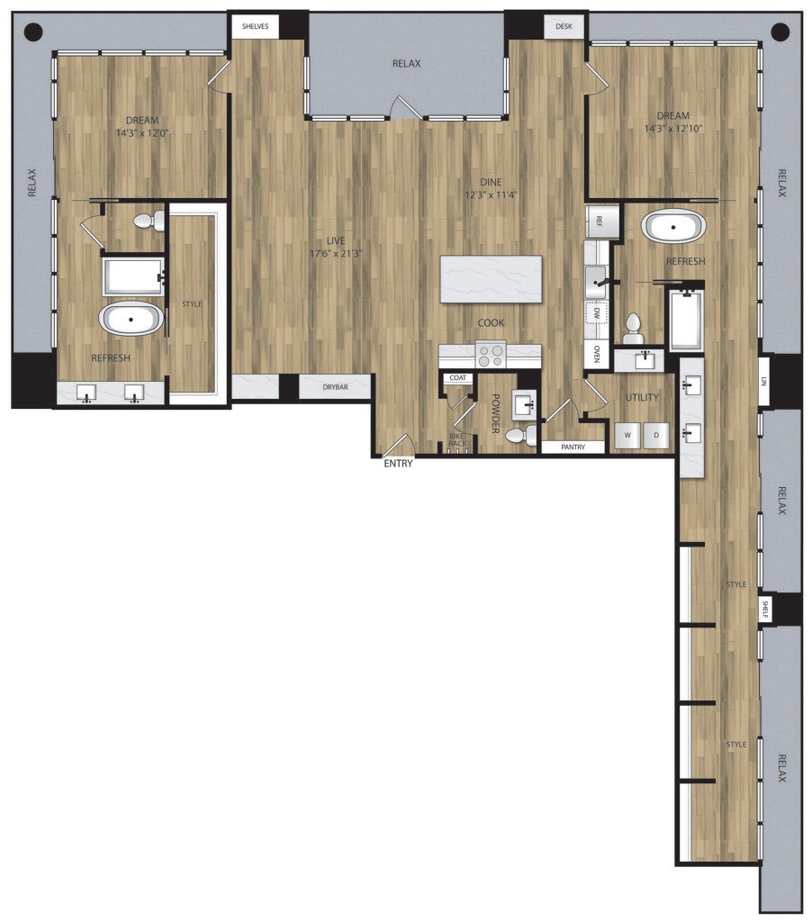 1 Bed, 1 Bath, 689 sq ftAvailable NowModel Gallery