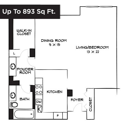 Studio, 1 Bath, 772-893 sq ftAvailable NowModel Gallery