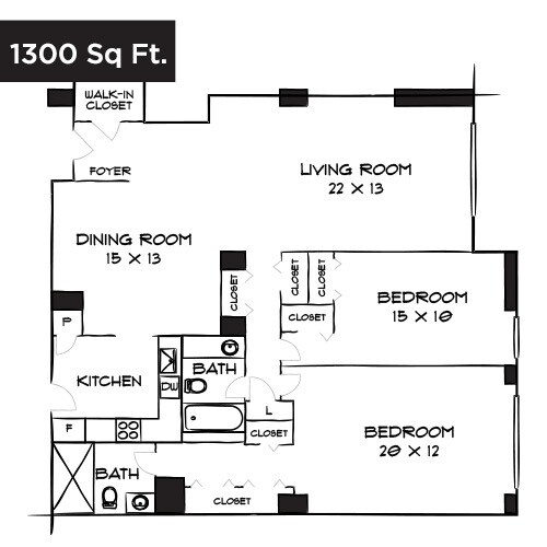 Design 1B15 - Floorplan 1 2 Bedrooms
