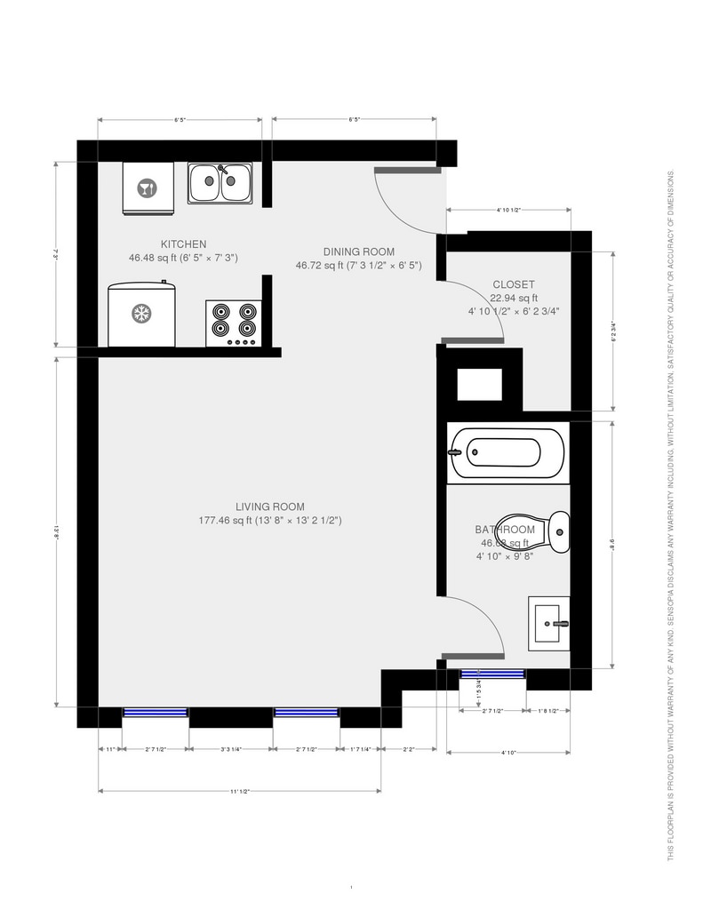 Efficiency/Studio - Floorplan 1 1 Bedroom