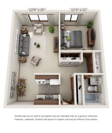 Apartment Model: 1BR/1BA$1,1001 Bedroom, 1 Bath, 600 sq ftUnavailable![]() - 1BR/1BA - Floorplan 1