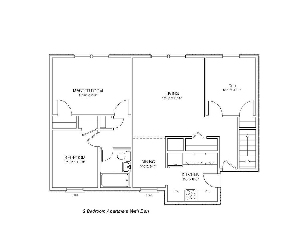 2 BEDROOM/ 1 DEN - Floorplan 1 Apartment Unit: 12AApartment Model: 2 BEDROOM/ 1 DEN$1,4502 Bedroom, 1 Bath, 949 sq ftAvailable Now2 BEDROOM/DINING ROOM