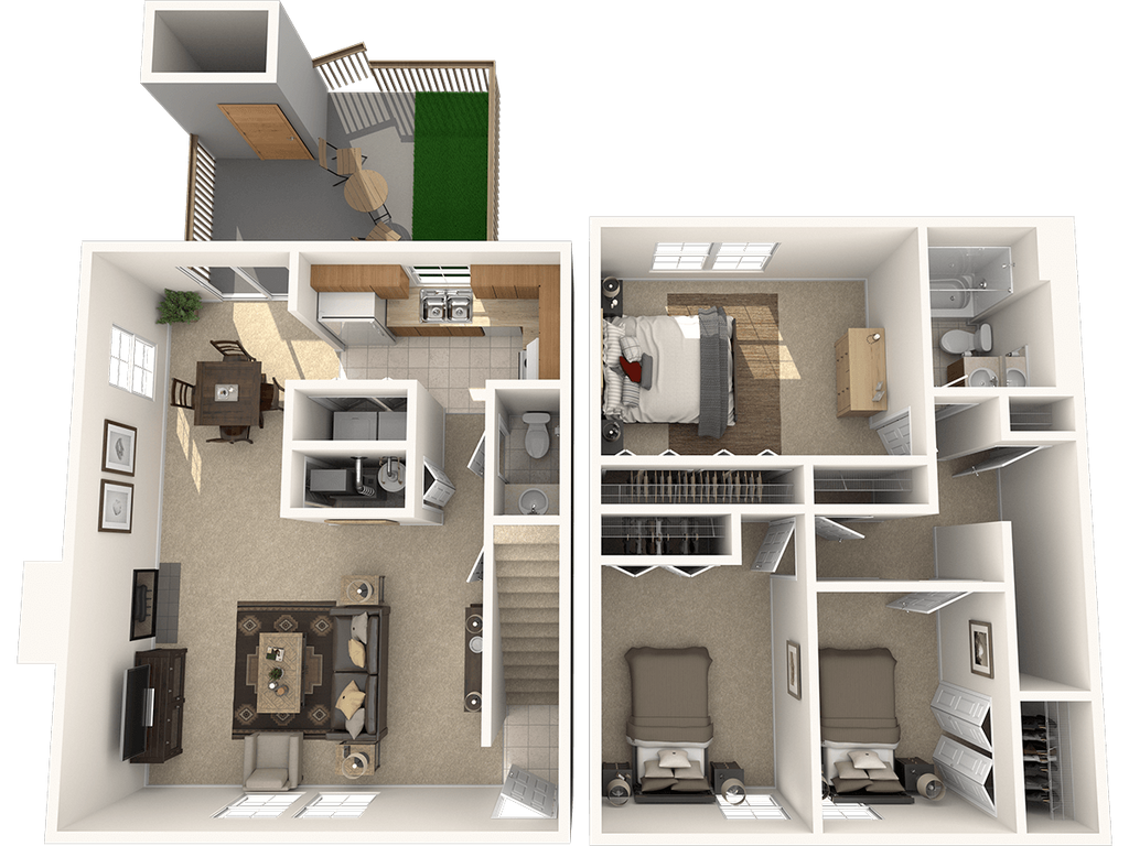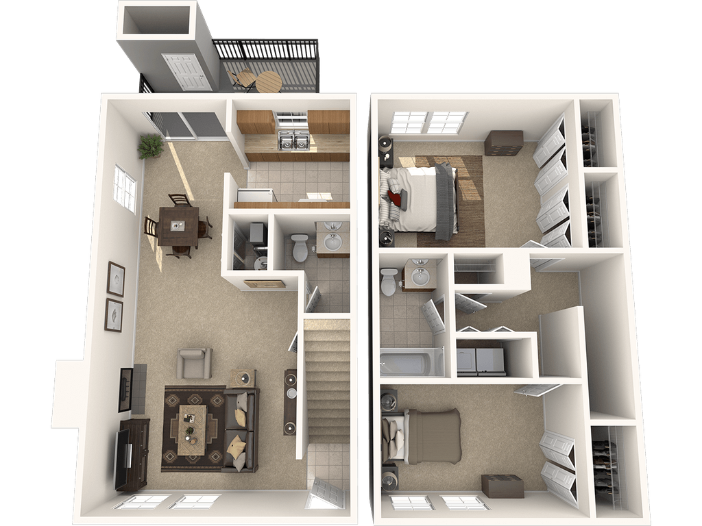 Apartment Model: Two Bedroom TownhomeFrom $1,3712 Bedroom, 1.5 Bath, 996 sq ftAvailable Now![]()