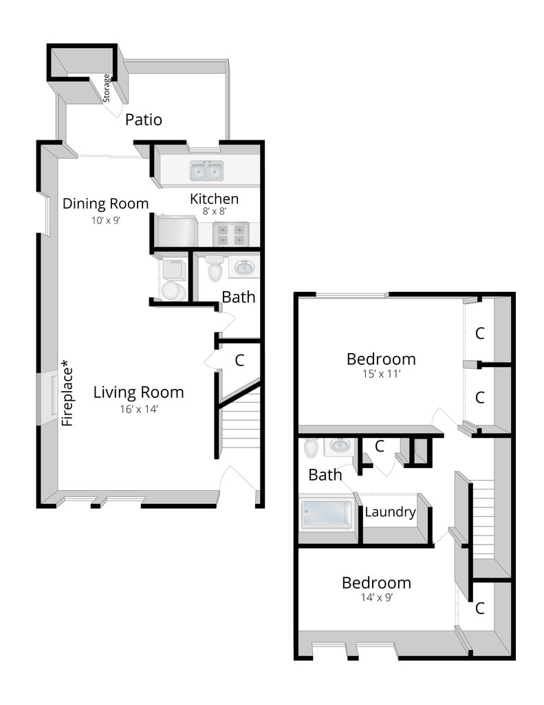 Two Bedroom Townhome - Floorplan 2 ![]()