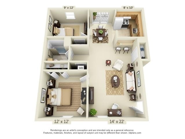 2 Beds, 1 Bath, 900-960 sq ftModel Gallery