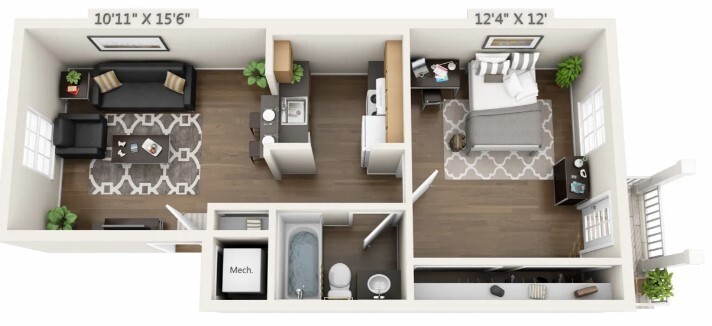 1 Bed, 1 Bath, 550 sq ftModel Gallery