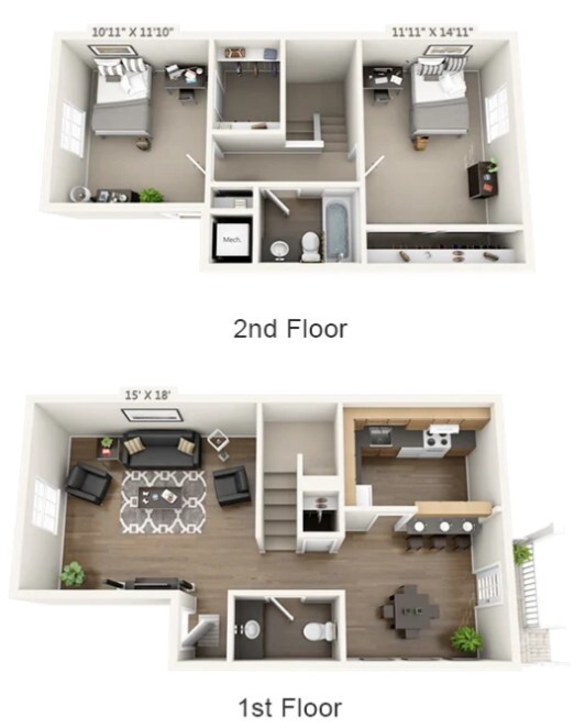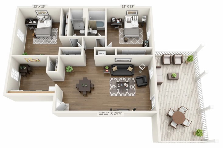 Apartment Model: 2x1.5From $1,2992 Bedroom, 1.5 Bath, 1100 sq ftUnavailable![]()