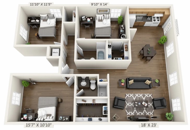 Apartment Model: 3x2 BFrom $1,5243 Bedroom, 2 Bath, 1300 sq ftUnavailable![]()