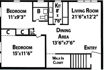 Apartment Model: 2 Beds, 1 bath2 Bedroom, 1 Bath, 950 sq ftUnavailable![]()