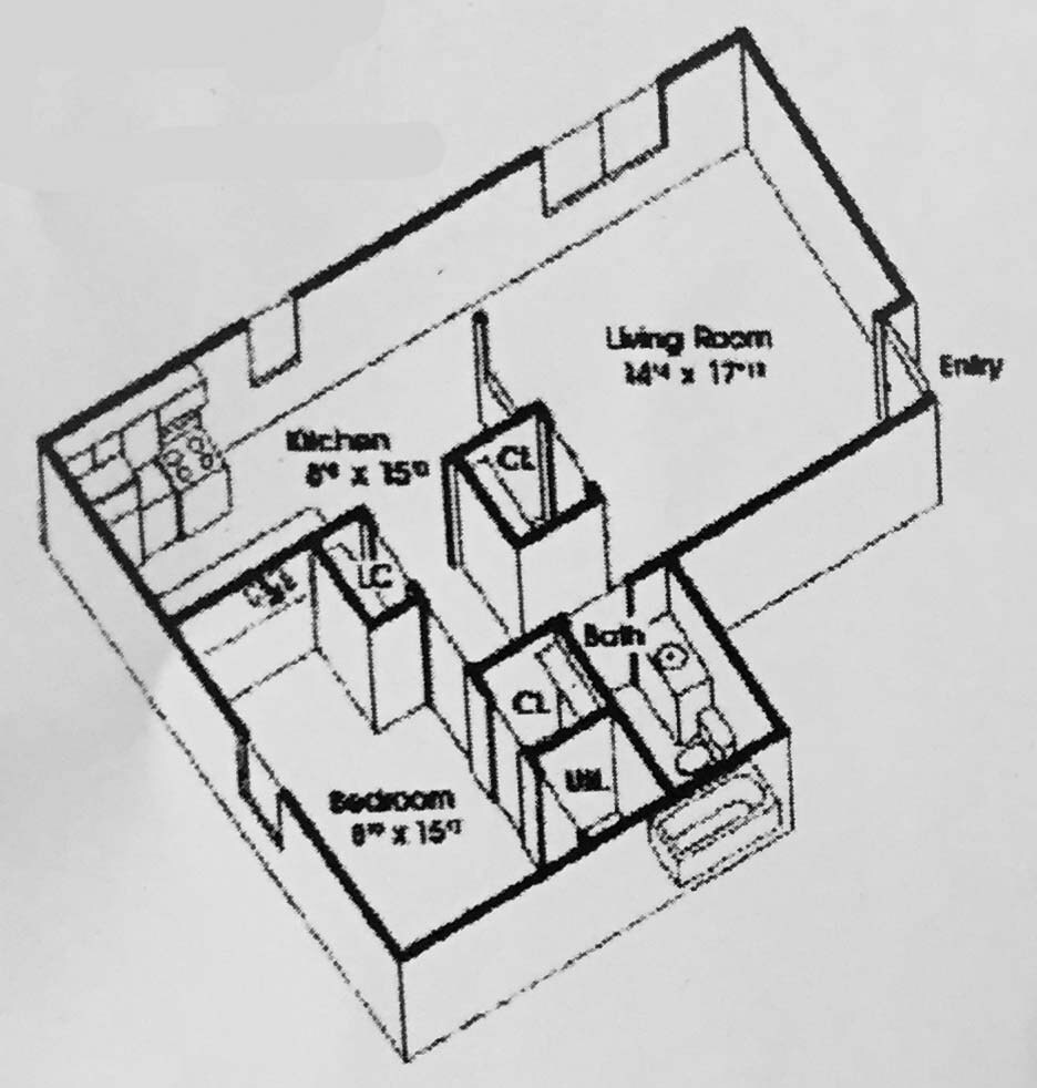 Apartment Model: East Side Non-RenoFrom $1,1102 Bedroom, 1 Bath, 750-830 sq ftAvailable Now![]()
