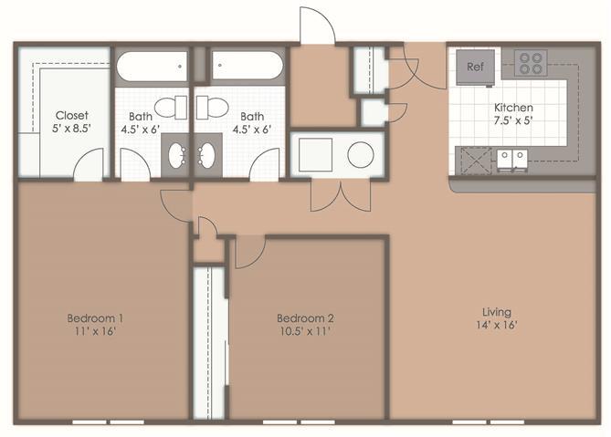 Apartment Model: 2 Bedrooms, 2 Bathrooms2 Bedroom, 2 Bath, 1102 sq ftUnavailable![]()