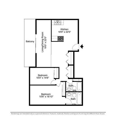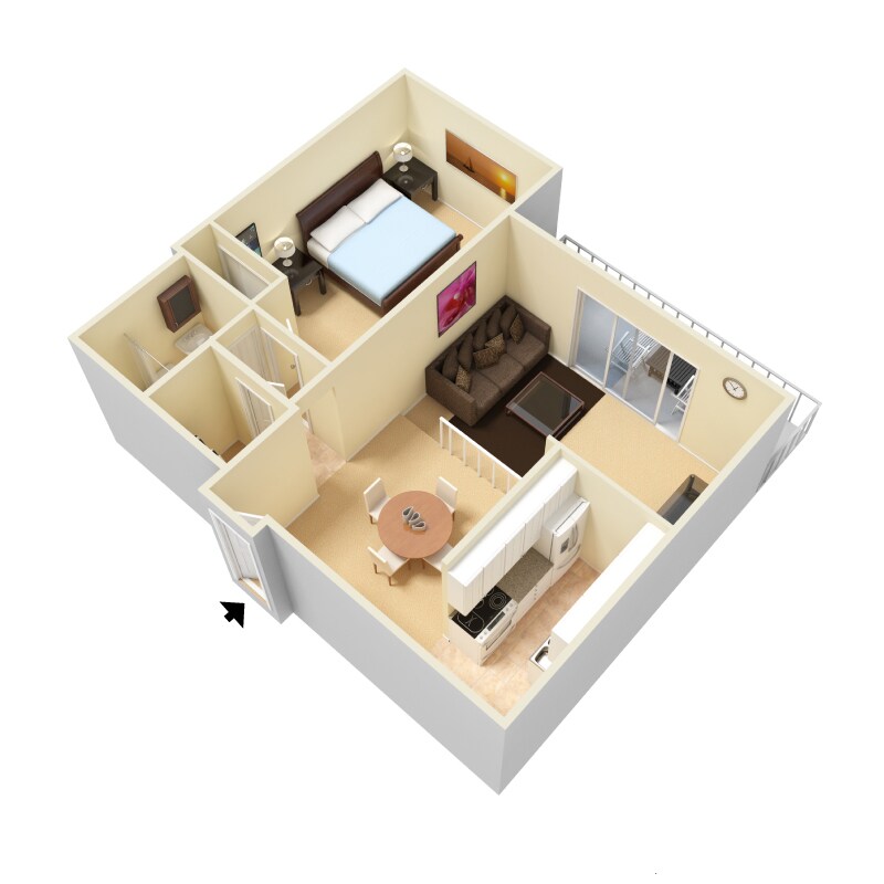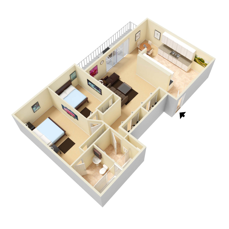 1 Bed 1 Bath Step-Down - Floorplan 4 Apartment Unit: 1-0703Apartment Model: 1 Bed 1 Bath Step-Down$8111 Bedroom, 1 Bath, 780 sq ftAvailable January 25, 20262 Bedrooms