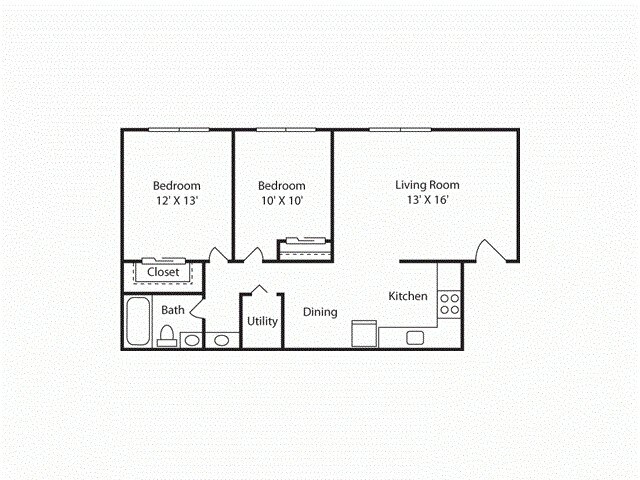 Classic 2BD/1BTH - Floorplan 1 ![]()