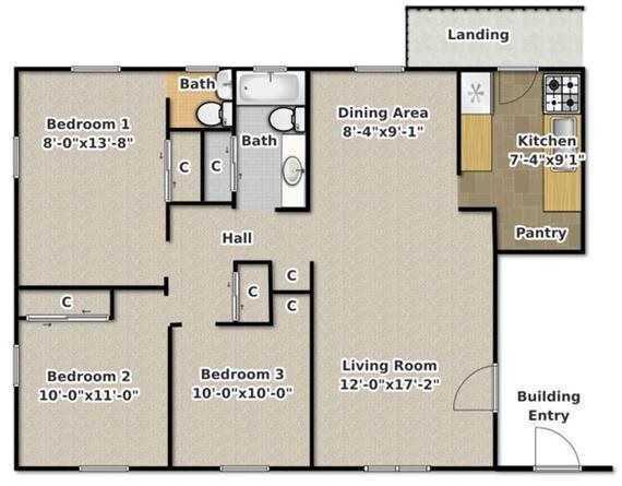 Apartment Model: 3x1.5 C13 Bedroom, 1.5 Bath, 1024 sq ftUnavailable![]()