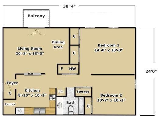 1x1 A1 - Floorplan 1 2 Bedrooms