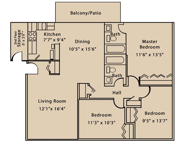 3 Beds, 2 Baths, 1112 sq ftAvailable NowModel Gallery
