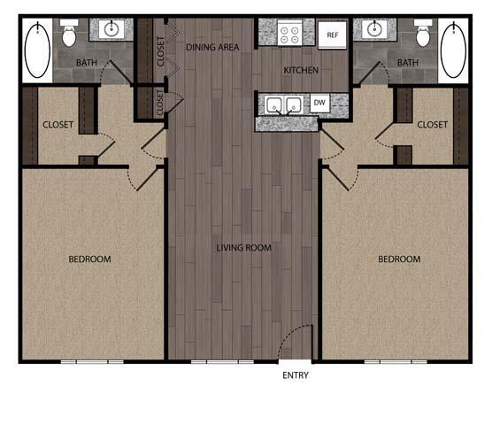 2 Beds, 2 Baths, 1008 sq ftLargest 2 BedroomThis is the largest 2 Bedroom at this PropertyModel Gallery