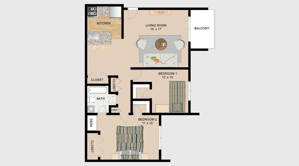 Apartment Model: essex$1,2401 Bedroom, 1 Bath, 686 sq ftAvailable NowFloorplansPhotos![]()