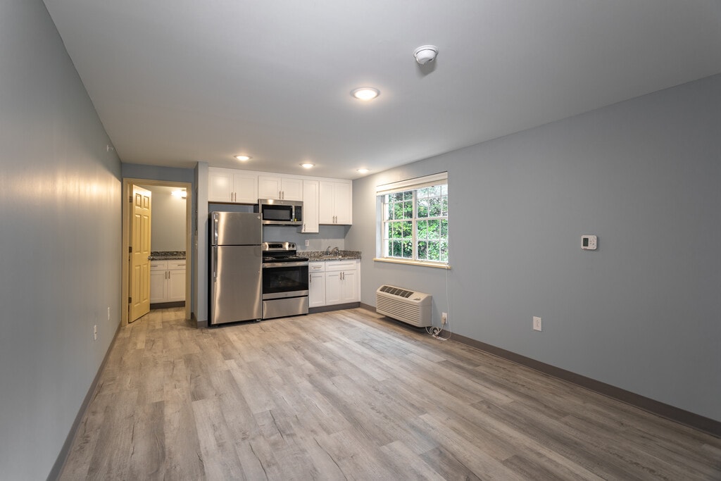 Willow Creek offers studio and one bedroom homes for rent in Williamsburg, Virginia. You can lay out by the pool, get a workout in the fitness center, browse the internet in our business center, relax and read a book in our shaded outdoor area, and head to Colonial Williamsburg all in the same day! Our brand-new apartment homes boast modern open floor plans, granite counter-tops, stainless-steel appliances, and more! Willow Creek offers three different styles and sizes of studios, and spacious one-bedroom apartments, with handicap accessibility offered. Each apartment offers brand-new stainless-steel appliances, cabinetry, and modern hardwood-style flooring. We are a pet friendly, serene suburban community in close proximity to major attractions including historic Colonial Williamsburg and Busch Gardens. From our community you can walk to restaurants, shops and more.