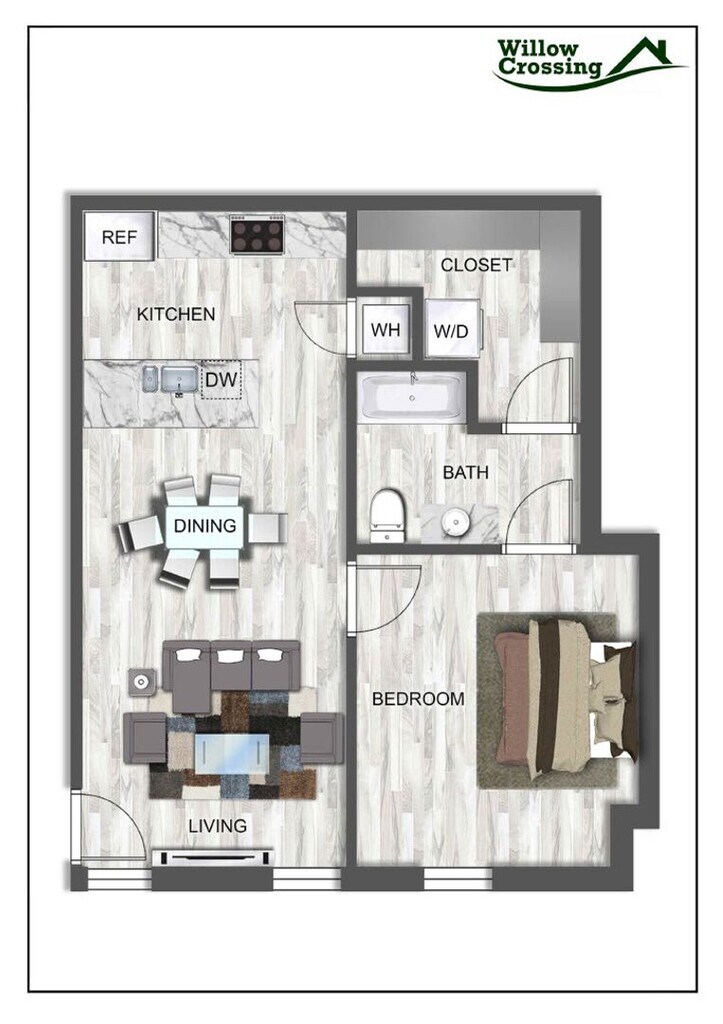 The current rent special at Willow Crossing Apartments is: 1 Month FREE + $500 Look & Lease Bonus!~~LIMITED-TIME OFFER.