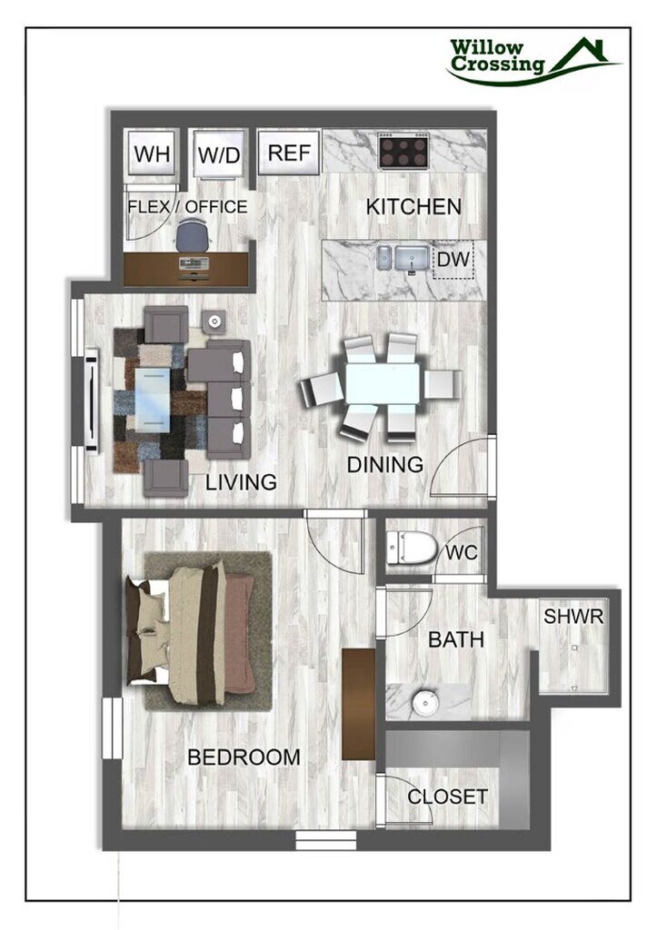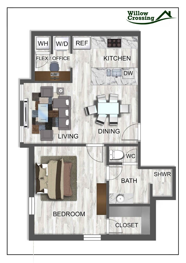 1 Bedroom to 2 Bedroom Apartments at Willow Crossing Apartments currently range from $1,125 to $1,595