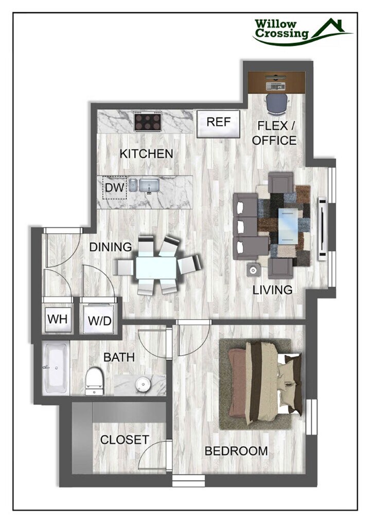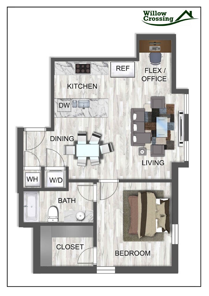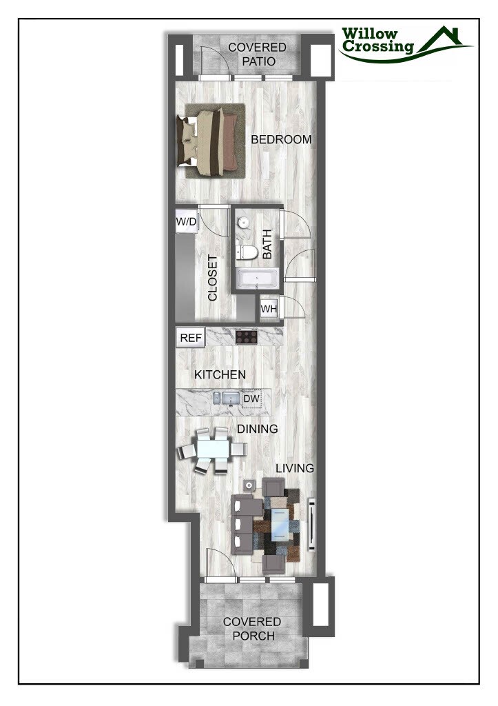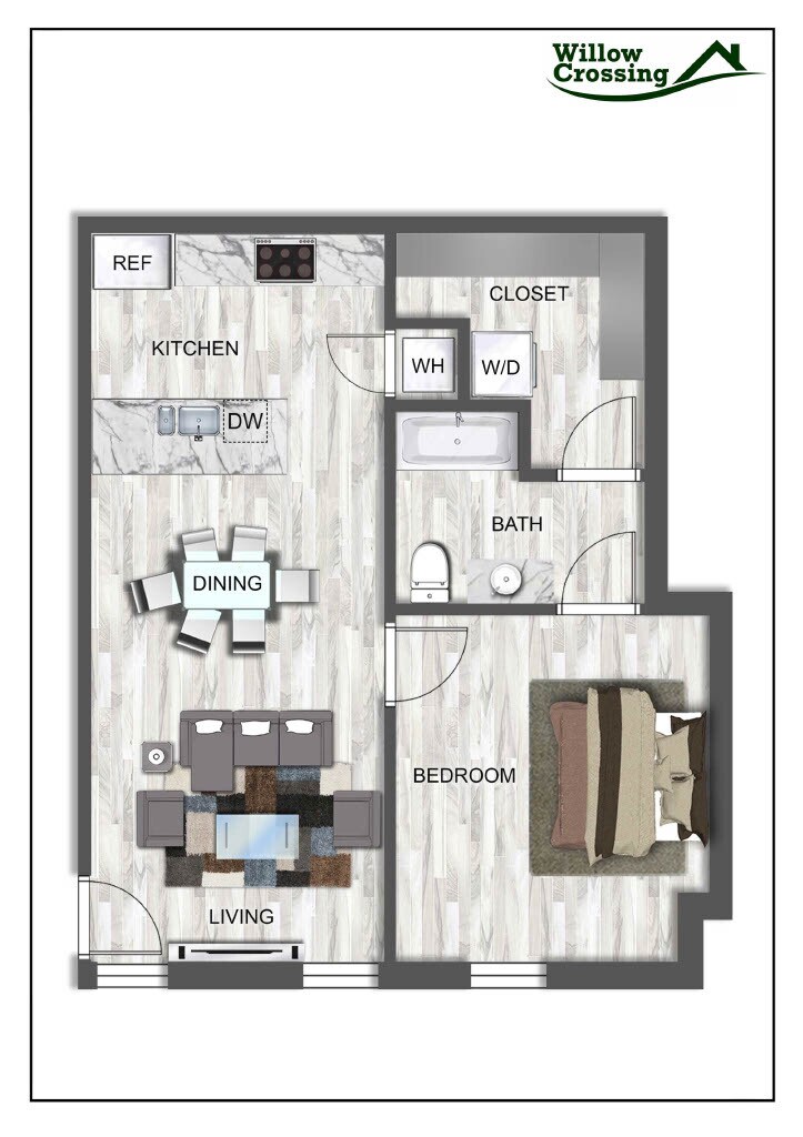 Willow Crossing Apartments offers 1 to 2 Bedroom apartments starting from $1,125 and having 626–966 sq ft. Here is the current pricing and availability: