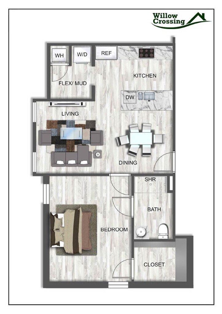 Welcome to Willow Crossing—Luxury Living in Centerton, Arkansas! Centrally located in Centerton, just a short 10-minute drive to Downtown Bentonville and the Walmart Corporate Office, Willow Crossing offers modern, thoughtfully designed residences. Each unit features stylish finishes, including granite countertops and open great-room kitchen layouts. Residents will enjoy spacious walk-in closets and in-unit washers and dryers for convenience. Choose from a variety of floorplans, including one-bedroom layouts with office spaces, as well as options for porches and balconies to enhance your living experience. As a special welcome, we’re offering one month free on ALL units! Plus, qualified preferred employers enjoy exclusive discounts. Experience the comfort and style of Willow Crossing—your perfect home, awaits!