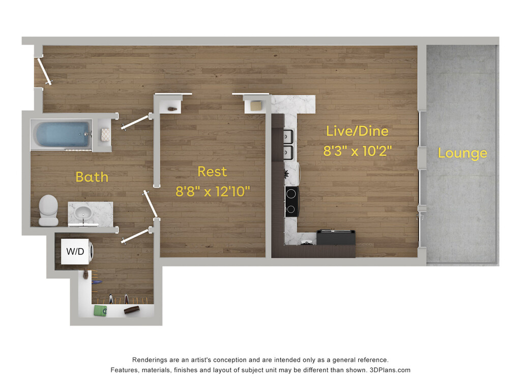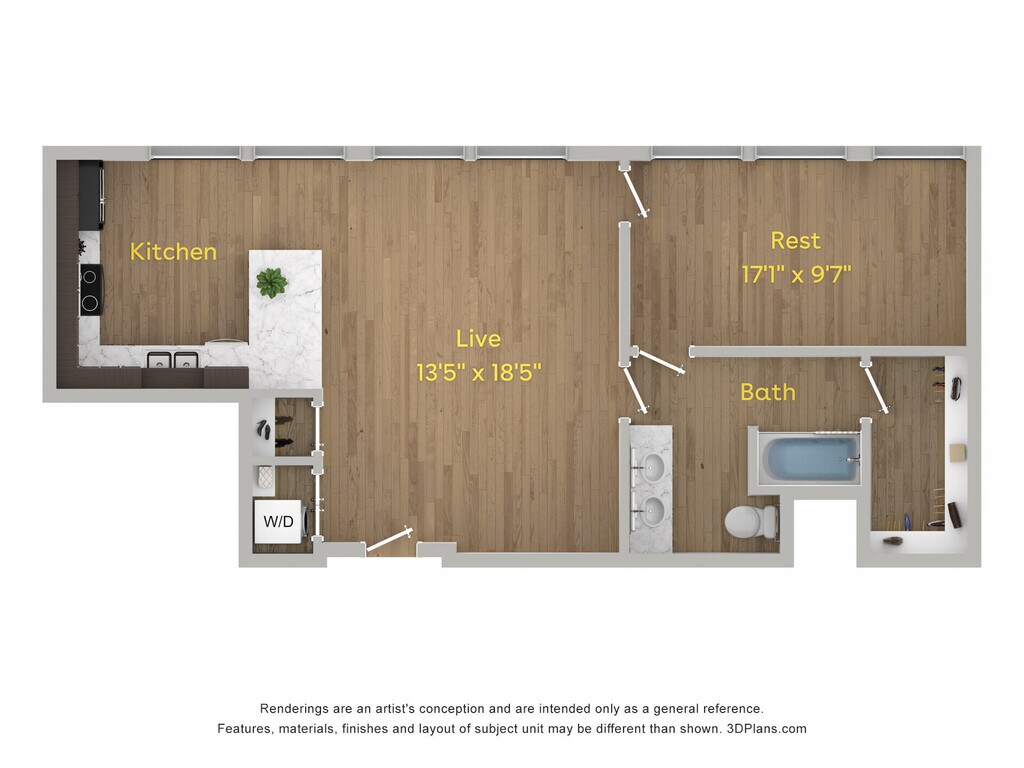S3 - Floorplan 1 Apartment Unit: 317Apartment Model: S3$1,710Studio, 1 Bath, 618 sq ftAvailable December 18, 20251 Bedroom