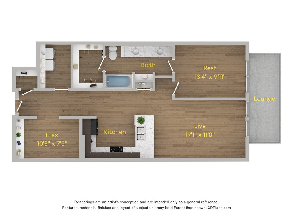 Studio, 1 Bath, 642 sq ftAvailable Dec 2Model Gallery