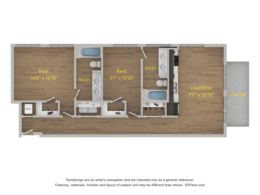 Studio, 1 Bath, 707 sq ftAvailable NowModel Gallery