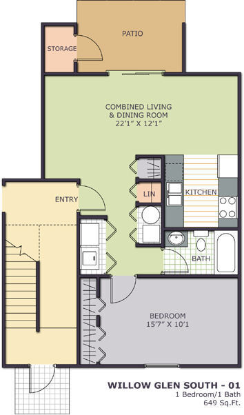 Apartment Model: 1 Bedroom 1 Bath$1,1191 Bedroom, 1 Bath, 649 sq ftAvailable Now1 Bedroom 1 Bath - Floorplan 1 1 Bedroom Loft
