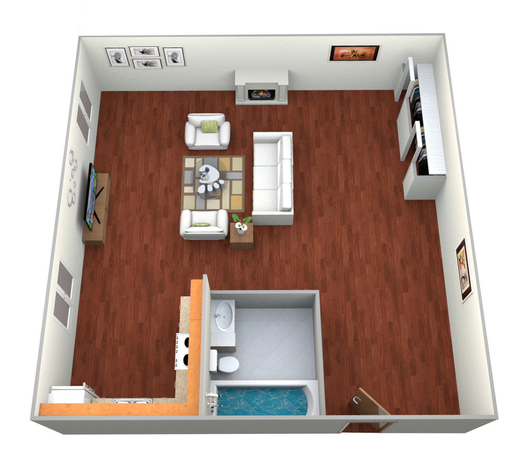Studio, 1 Bath, 600 sq ftModel Gallery