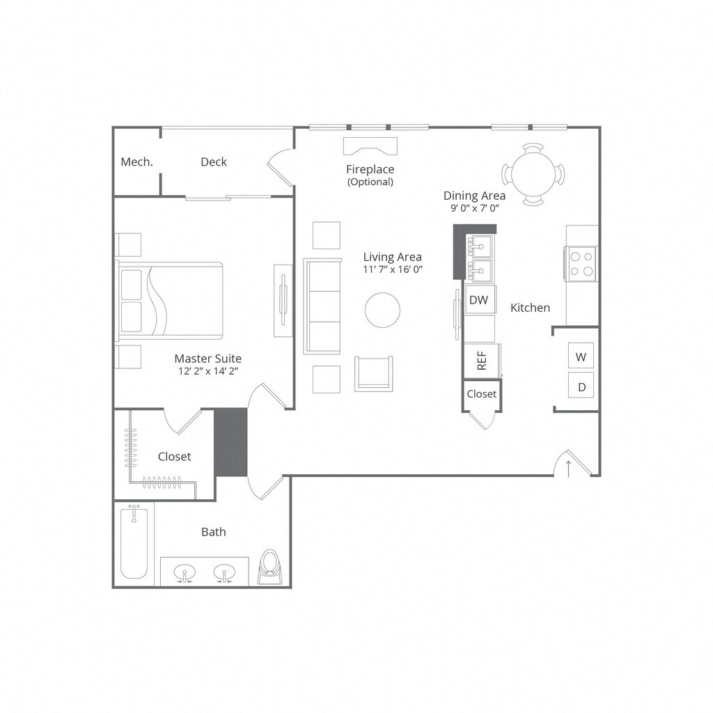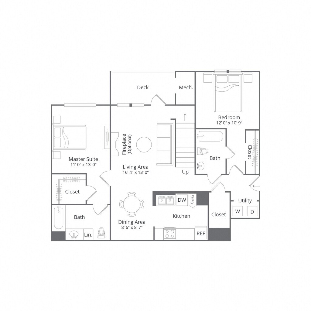 1 Bed/1 Bath Loft-Crossbrook - Floorplan 1 2 Bedrooms