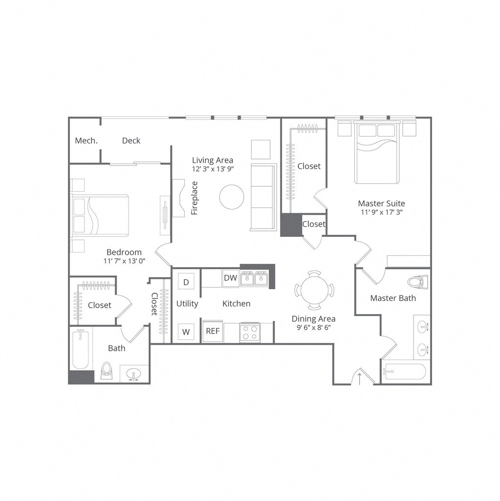 Apartment Model: 2 Bed/2 Bath-LaurelFrom $2,8332 Bedroom, 2 Bath, 1212 sq ftAvailable Now![]()