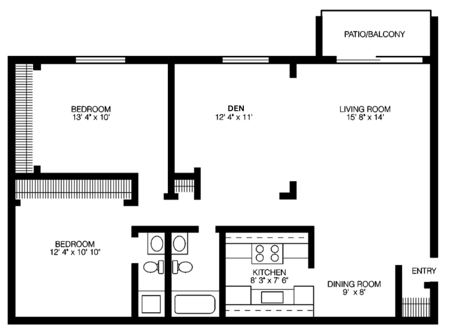 2 Beds, 1 Bath, 858 sq ftAvailable NowModel Gallery