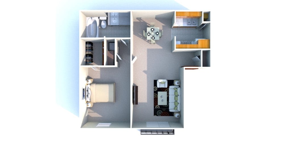 Apartment Model: Chrysantha$9751 Bedroom, 1.5 Bath, 750 sq ftAvailable NowChrysantha - Floorplan 1 Bluebell