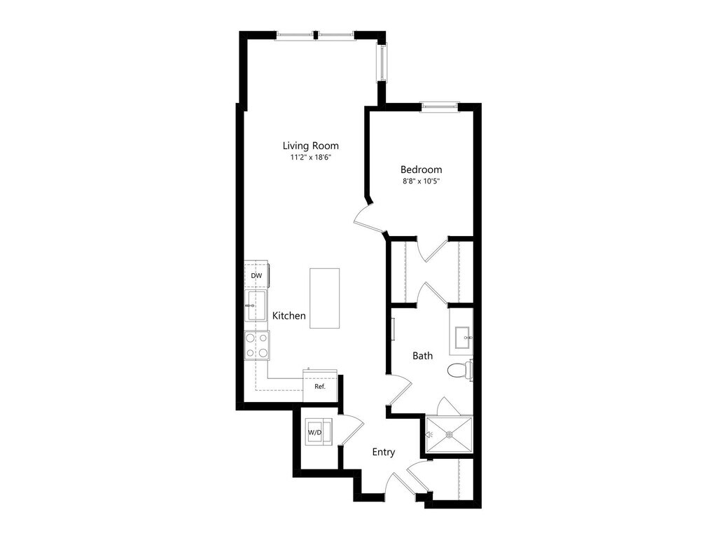 A3 - Floorplan 8 Apartment Unit: W110Apartment Model: A3$1,601Studio, 1 Bath, 624 sq ftAvailable Now1 Bedroom
