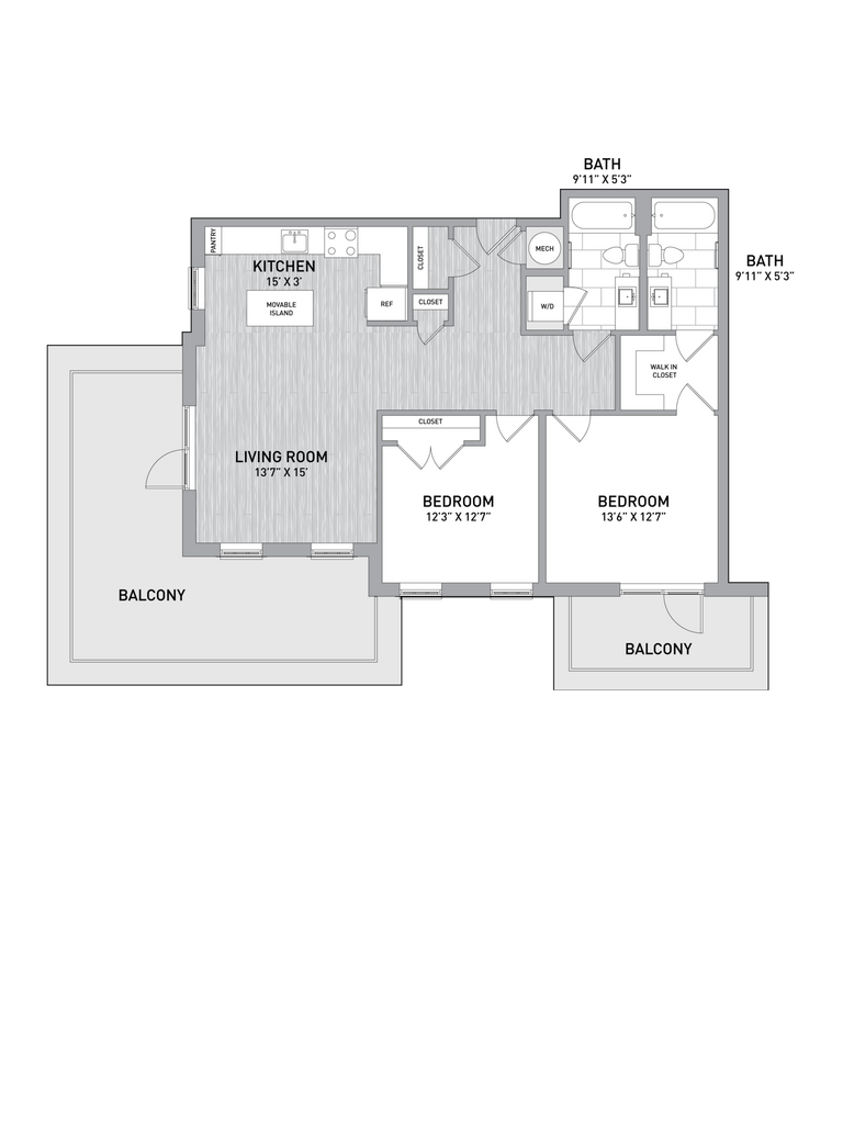 B3 - Floorplan 2 Apartment Unit: M002Apartment Model: B3$1,7341 Bedroom, 1 Bath, 706 sq ftAvailable NowFloorplan C2